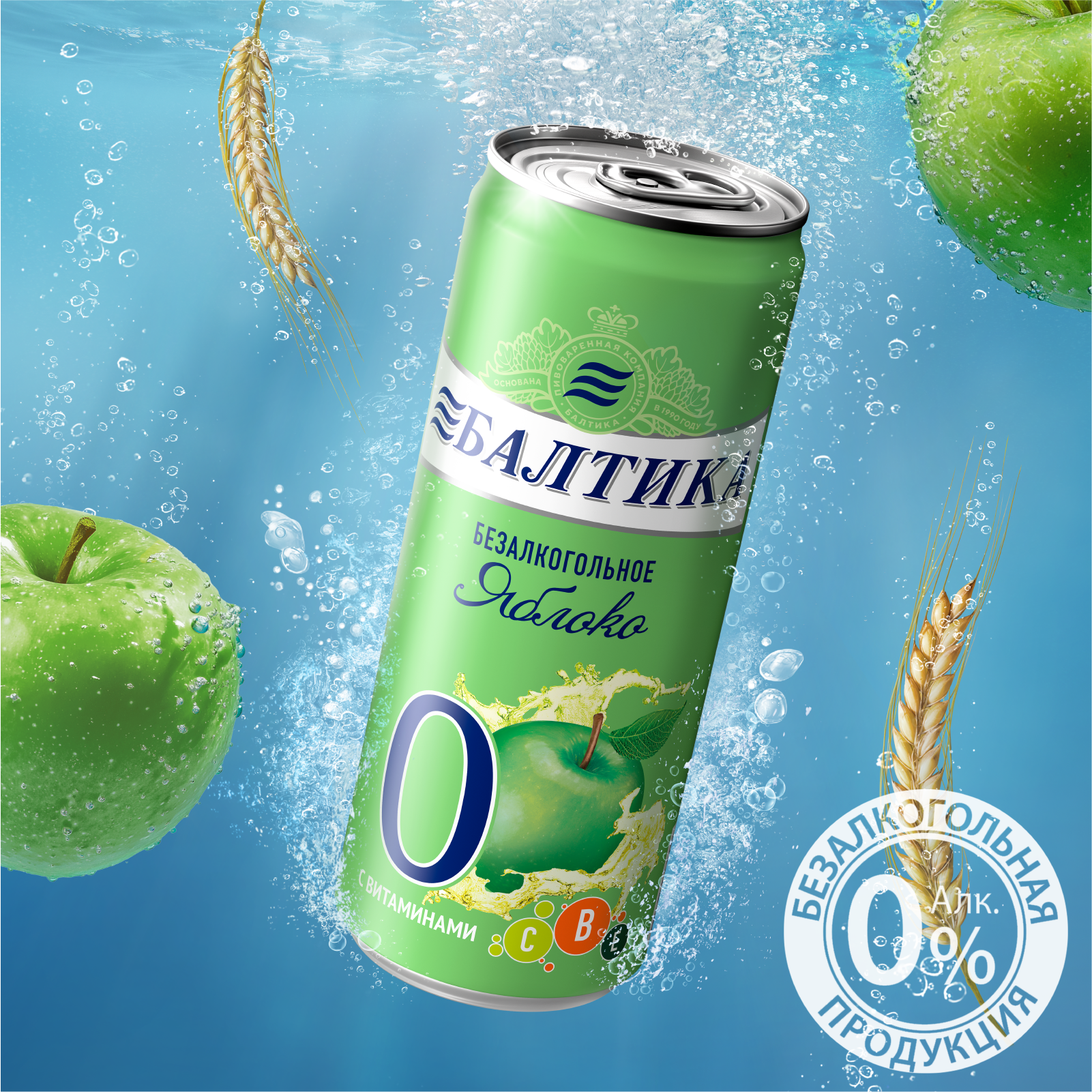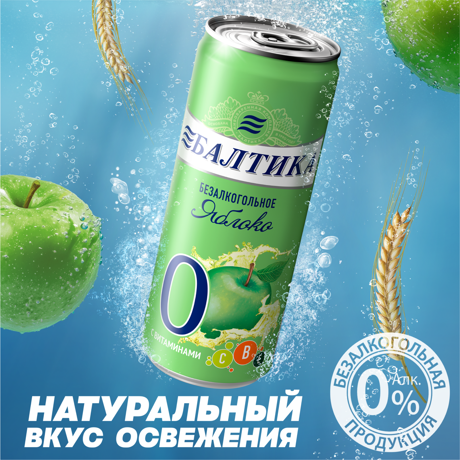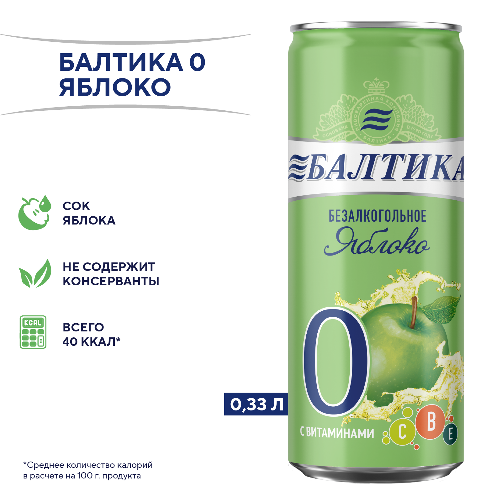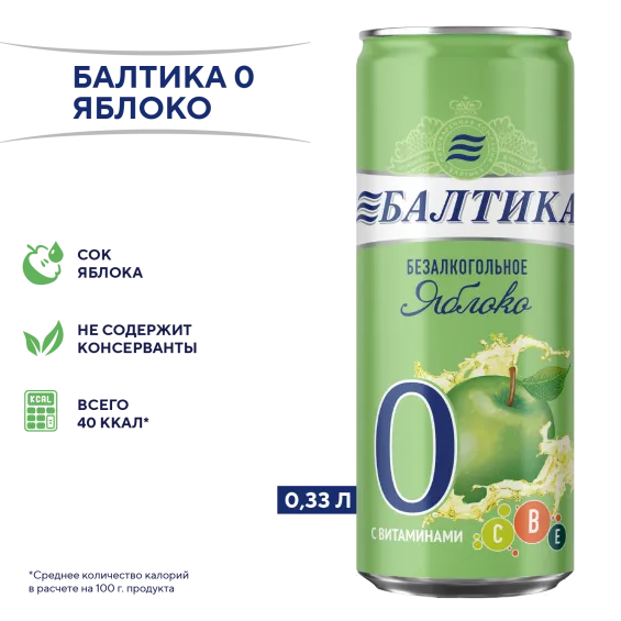 Балтика №0 Безалкогольное Яблоко Банка 0,33