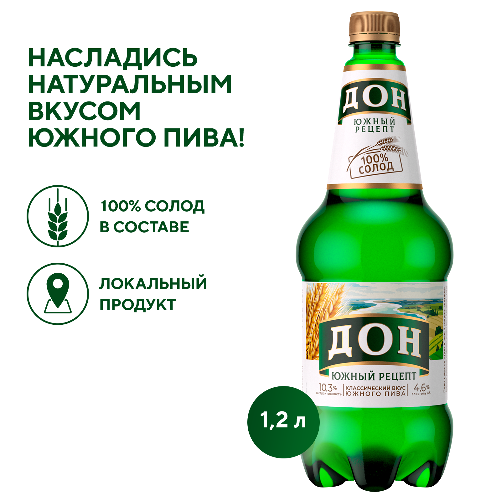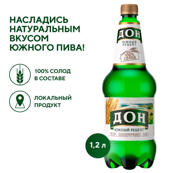 Дон Южный рецепт светлое ПЭТ 1,2 в Ростове — классическое пиво для повседневного отдыха. Сочетает подробнееДон Южный рецепт светлое ПЭТ 1,2 в Ростове — классическое пиво для повседневного отдыха. Сочетает приятный солодовый вкус и аккуратную хмелевую горчинку. Подходит как для самостоятельного употребления, так и в сочетании с закусками. Хорошо подходит к мясным блюдам, сырам и снекам. Купить Дон Южный рецепт светлое ПЭТ 1,2 в Ростове с самовывозом в фирменном магазине Балтика легко — оформи заказ онлайн и забери без ожидания доставки.