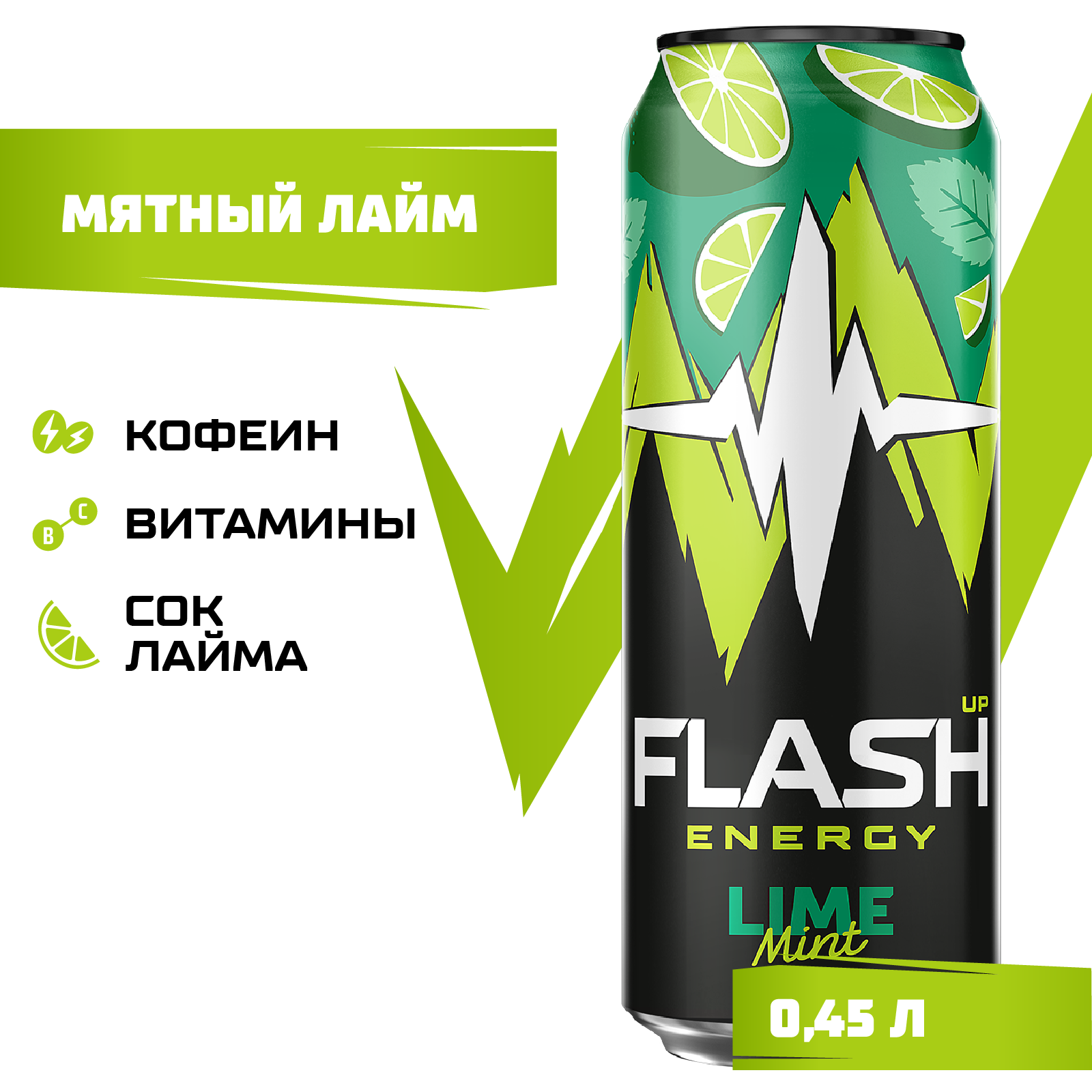 "Flash UP Energy Мятный Лайм банка 0,45 л – Освежающая энергия в каждом глотке! Flash UP Energy