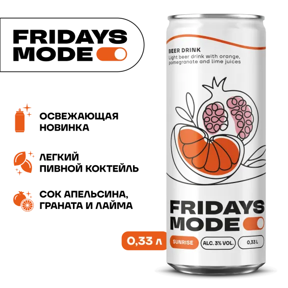 вода питьевая, солод пивоваренный ячменный светлый и карамельный, ячмень пивоваренный, хмелепродукты, регулятор кислотности кислота лимонная, глюкозно-фруктозный сироп, ароматизатор пищевой эмульсионный «Ваниль» (стабилизаторы: E414, E444, E445, регулятор кислотности Е330, консерванты: Е202, Е211), растительный экстракт (сироп глюкозно-фруктозный, вода, экстракт сафлора, регулятор кислотности Е330, консервант Е202), ароматизатор пищевой натуральный «Лимон-Лайм», ароматизатор пищевой «Гранат», ароматизатор пищевой «Апельсин», сок концентрированный из граната, сок концентрированный из апельсина, сок концентрированный из лайма, сок моркови концентрированный.