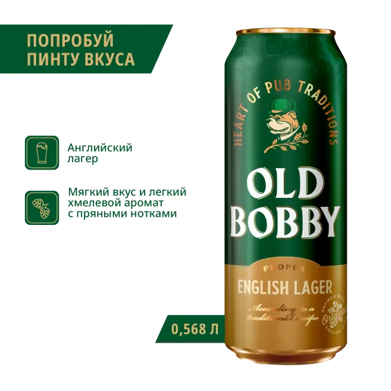 "Old Bobby Lager Банка 0,45 л – классика лёгкости и свежести!