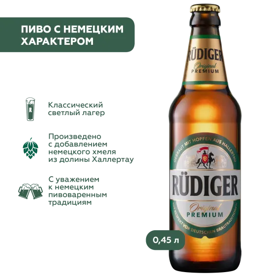 Приобрети Rudiger Original Premium уже сегодня и наслаждайся премиум пивом с насыщенным вкусом!"